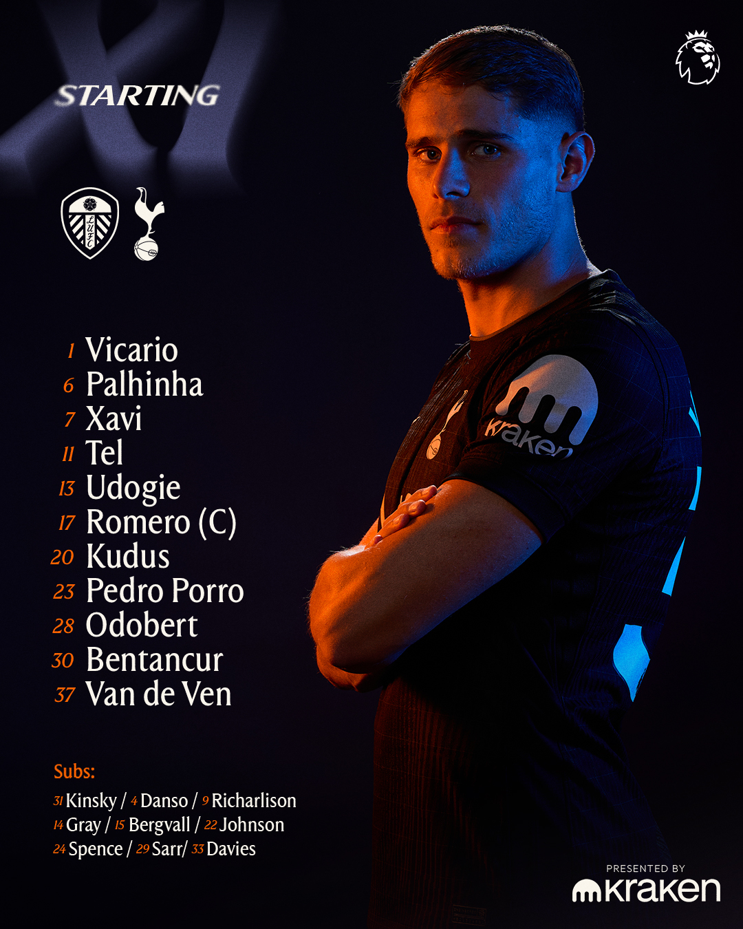 Kolejny mecz bez napastnika w składzie. Spodziewajmy się 100 wrzutek i różnych na pierwszego obrońcę i 40 metrowych wrzutów z autu. Ciekawe czy Frank jakieś wnioski wyciąga z tych meczy. Simons traci wszystkie atuty na skrzydle i powinien grać na 10tce. Palhinha z Bentancurem na raz na boisku jest zbyt defensywne. Vicario powinien odpocząć po ostatnich wyczynach i Kinsky zasługuje na swoją szansę. Bergvall jest młody i nie możemy go zajechać grą w każdym meczu, pora żeby Sarr się wykazał.